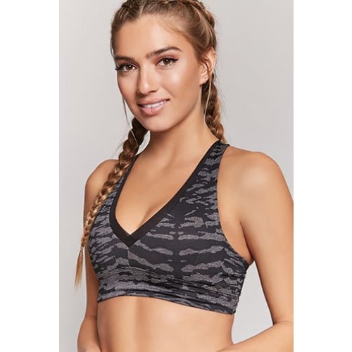 High Impact - Camo Sports Bra DetailsA high-impact sports bra featuring an allover camo print, a V-neckline with contrast sheer mesh trim, removable cups, and adjustable cami straps that cross at the back.- Matching bottoms available.Content + Care- Shell 1: 88% polyester, 12% spandex- Shell 2 & Lining: 80% nylon, 20% spandex- Machine wash cold- Made in IndonesiaSize + Fit- Model is 5'9.5%22 and wearing a Small